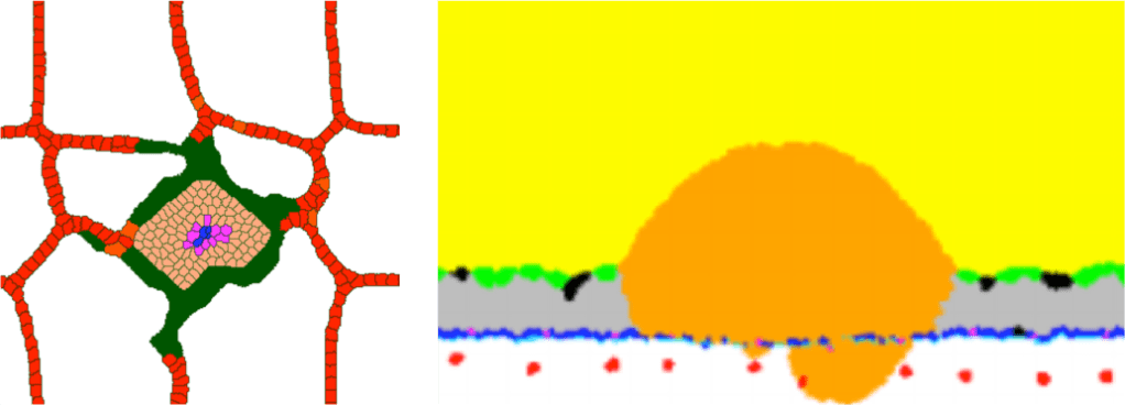 We develop cell based models that explore bio-mechanical processes in tumor development. We have a strong focus on urothelium cancer, where we find that the position of initial lesion in the urothelium strongly determines tumor progression and its invasiveness.