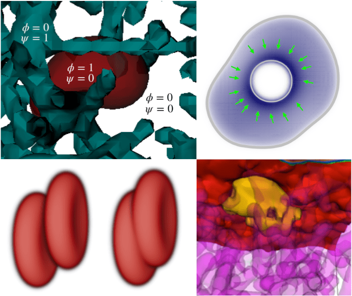 - Tumor angiogenesis and vascular patterning: a mathematical model, Rui DM Travasso, Eugenia Corvera Poiré, Mario Castro, Juan Carlos Rodríguez-Manzaneque, A. Hernández-Machado, PLoS ONE, 6, e19989 (2011).